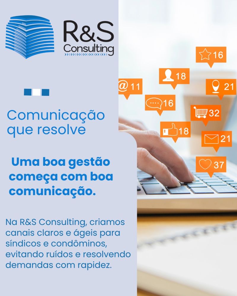 Na R&S Consulting, criamos canais claros e ágeis para síndicos e condôminos, evitando ruídos e resolvendo demandas com rapidez. 💬 Porque condomínio é mais do que prédio: é comunidade.
